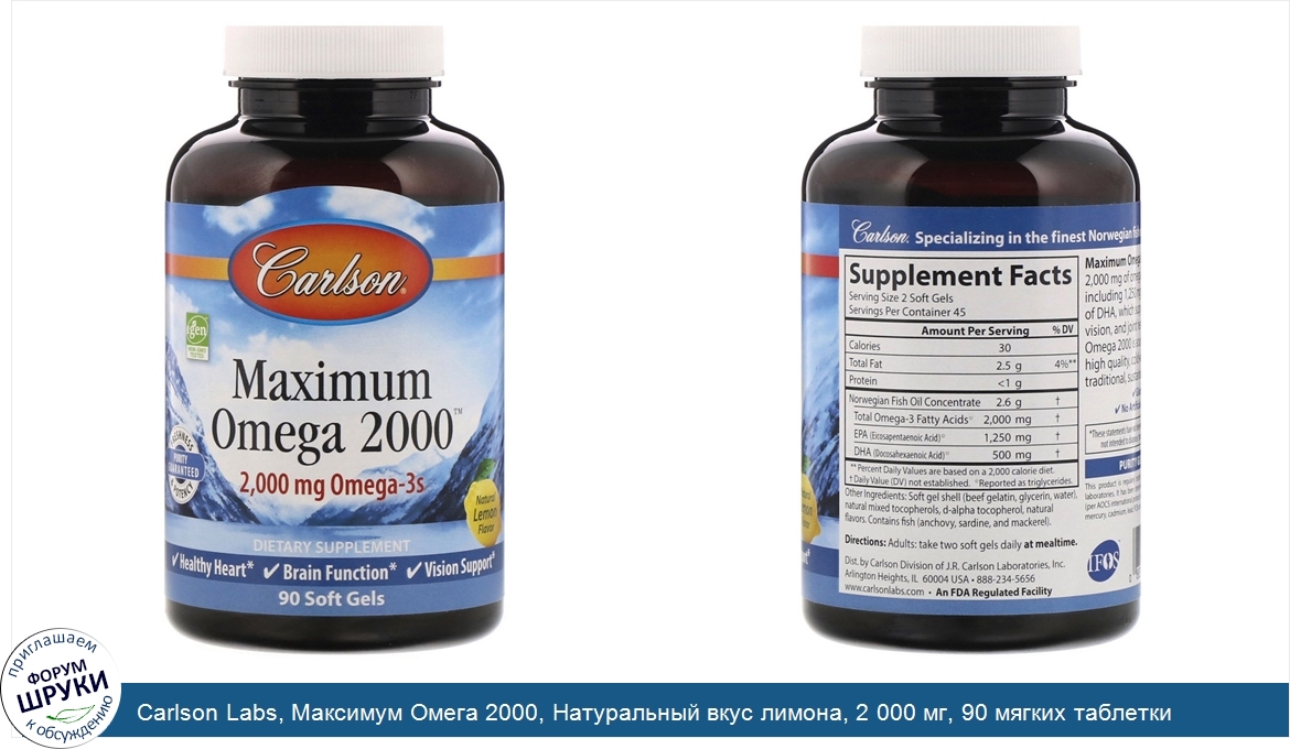 Друзья, если у вас есть отзыв/дополнение/комментарий/вопрос относительно Carlson Labs, Максимум Омега 2000, Натуральный вкус лимона, 2 000 мг, 90 мягких таблетки - напишите его ответом в эту тему (это будет полезно всему сообществу в целом и вам в отдельности).