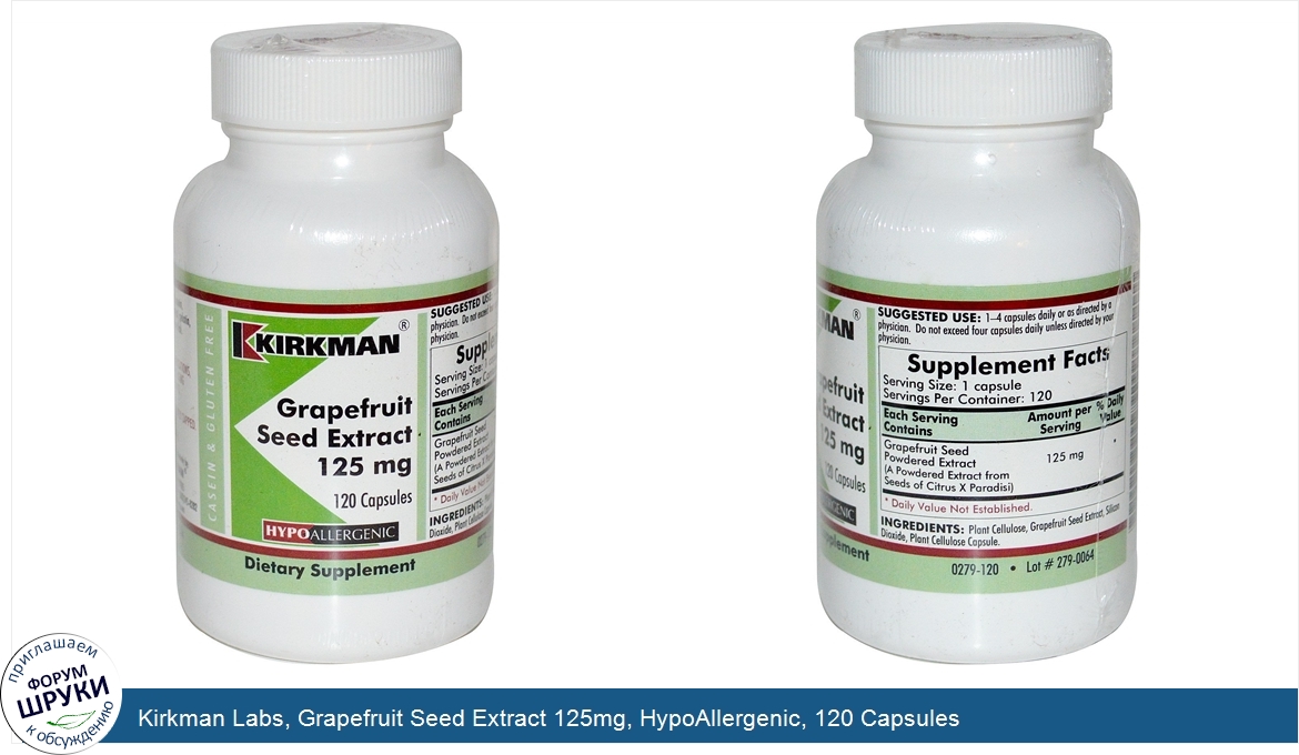 ru Kirkman Labs, Grapefruit Seed Extract 125mg, HypoAllergenic, 120 Capsules