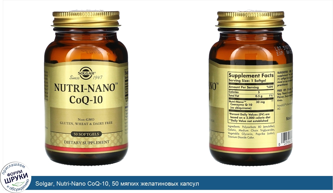 Друзья, если у вас есть отзыв/дополнение/комментарий/вопрос относительно Solgar, Nutri-Nano CoQ-10, 50 мягких желатиновых капсул - напишите его ответом в эту тему (это будет полезно всему сообществу в целом и вам в отдельности).