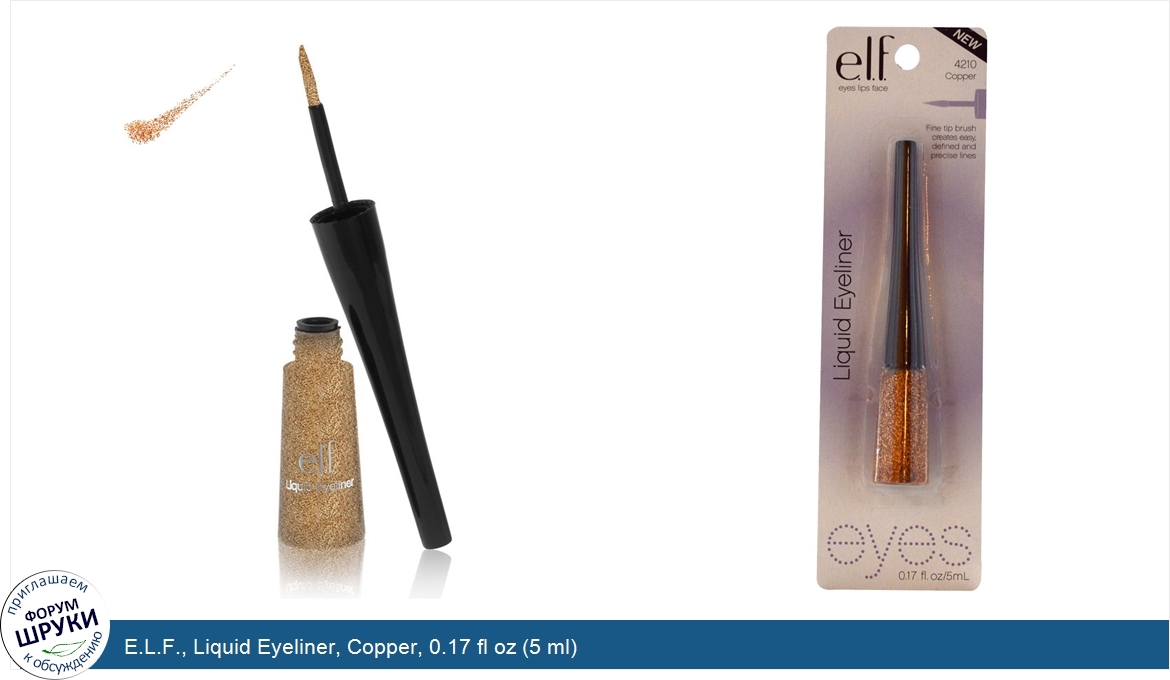 Друзья, если у вас есть отзыв/дополнение/комментарий/вопрос относительно E.L.F., Liquid Eyeliner, Copper, 0.17 fl oz (5 ml) - напишите его ответом в эту тему (это будет полезно всему сообществу в целом и вам в отдельности).