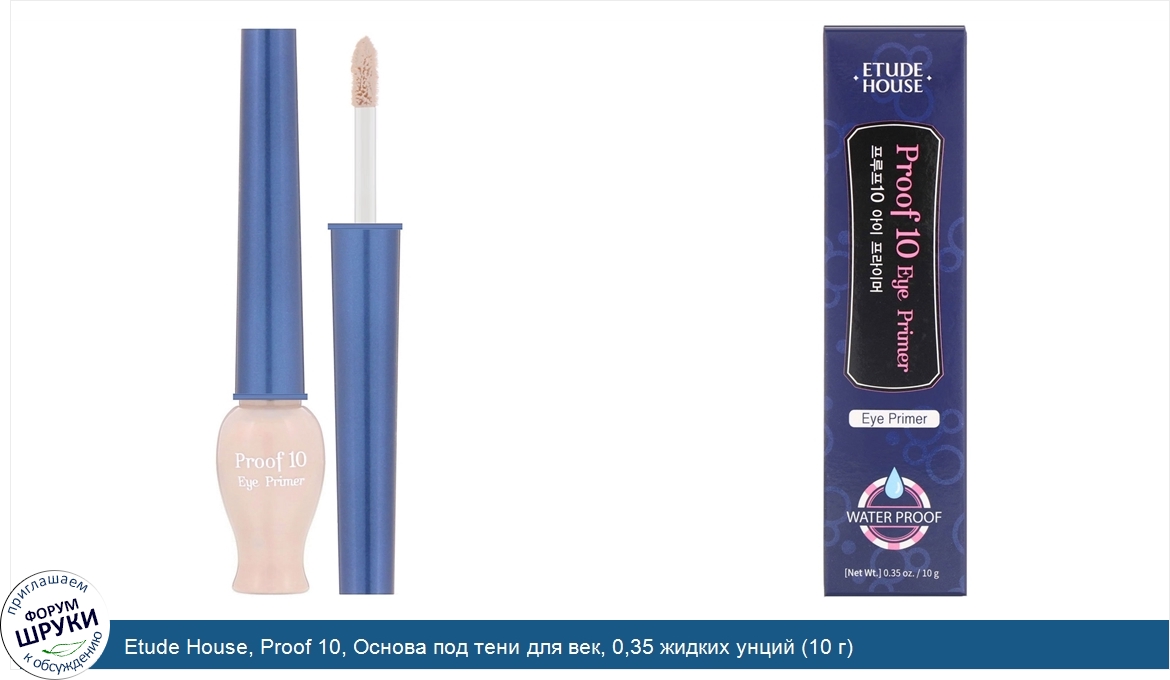Друзья, если у вас есть отзыв/дополнение/комментарий/вопрос относительно Etude House, Proof 10, Основа под тени для век, 0,35 жидких унций (10 г) - напишите его ответом в эту тему (это будет полезно всему сообществу в целом и вам в отдельности).