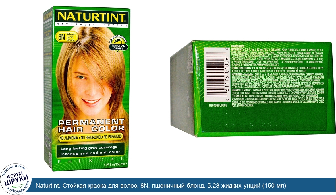 Друзья, если у вас есть отзыв/дополнение/комментарий/вопрос относительно Naturtint, Стойкая краска для волос, 8N, пшеничный блонд, 5,28 жидких унций (150 мл) - напишите его ответом в эту тему (это будет полезно всему сообществу в целом и вам в отдельности).