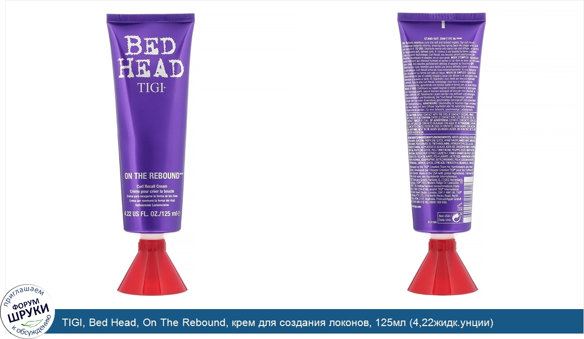Друзья, если у вас есть отзыв/дополнение/комментарий/вопрос относительно TIGI, Bed Head, On The Rebound, крем для создания локонов, 125мл (4,22жидк.унции) - напишите его ответом в эту тему (это будет полезно всему сообществу в целом и вам в отдельности).