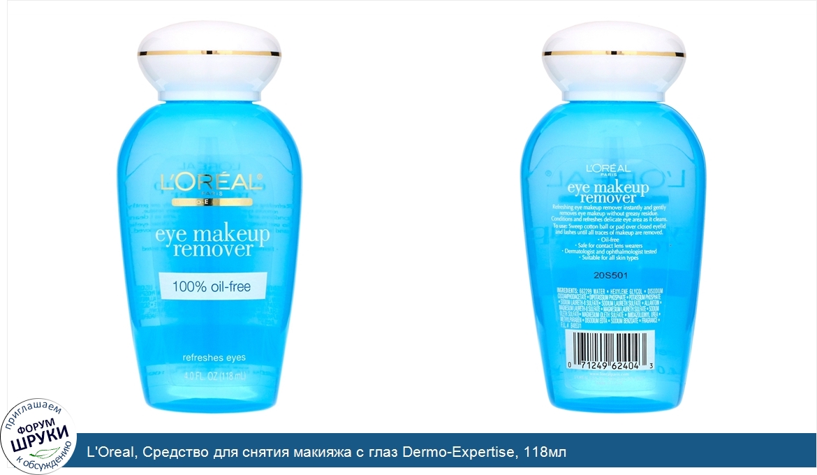 L'Oreal, Средство для снятия макияжа с глаз Dermo-Expertise, 118мл
