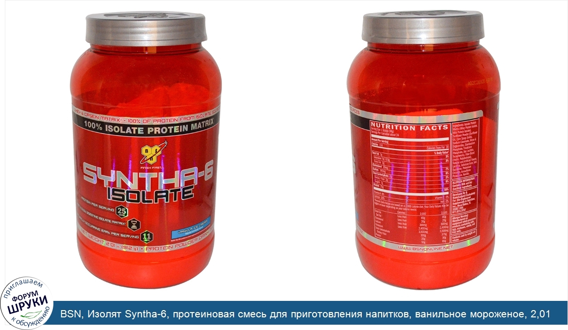 ru BSN, Изолят Syntha-6, протеиновая смесь для приготовления напитков, ванильное мороженое, 2,01 фунта (902 gr)
