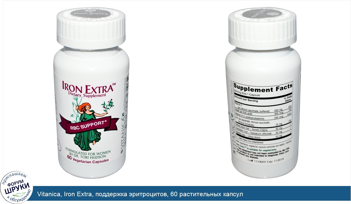 ru Vitanica, Iron Extra, поддержка эритроцитов, 60 растительных капсул