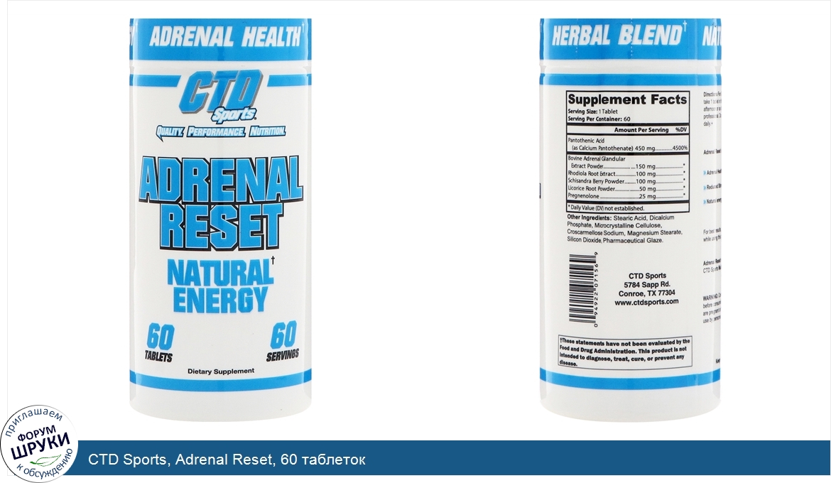 Категории: Питание для физической активности, Добавки для физической активности, Состояния здоровья, Деятельность мозга, Здоровье надпочечников, CTD Sports, 79855