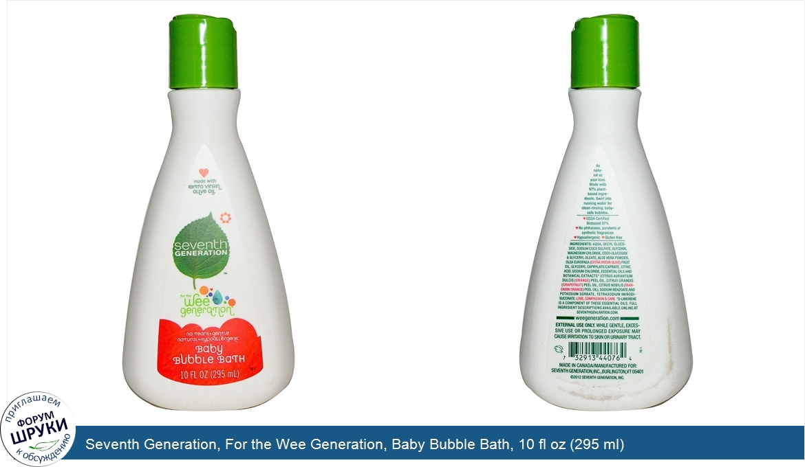 Друзья, если у вас есть отзыв/дополнение/комментарий/вопрос относительно Seventh Generation, For the Wee Generation, Baby Bubble Bath, 10 fl oz (295 ml) - напишите его ответом в эту тему (это будет полезно всему сообществу в целом и вам в отдельности).