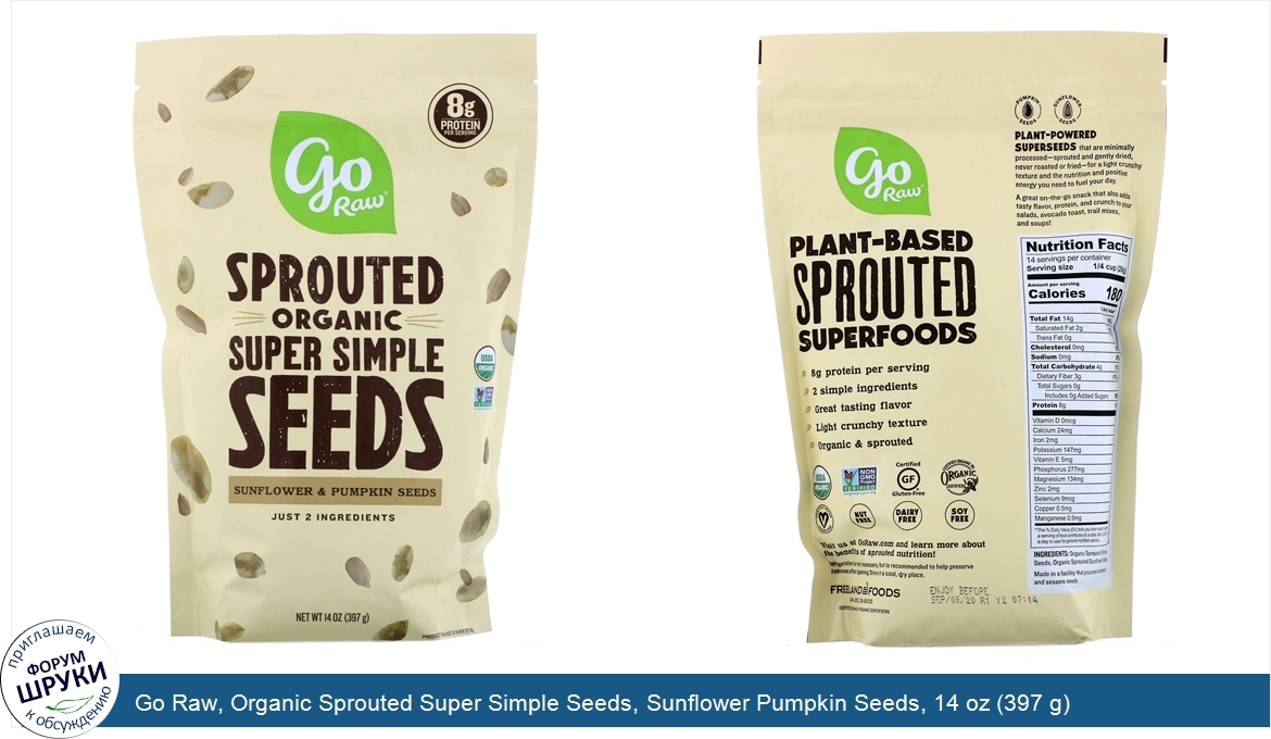Друзья, если у вас есть отзыв/дополнение/комментарий/вопрос относительно Go Raw, Organic Sprouted Super Simple Seeds, Sunflower Pumpkin Seeds, 14 oz (397 g) - напишите его ответом в эту тему (это будет полезно всему сообществу в целом и вам в отдельности).