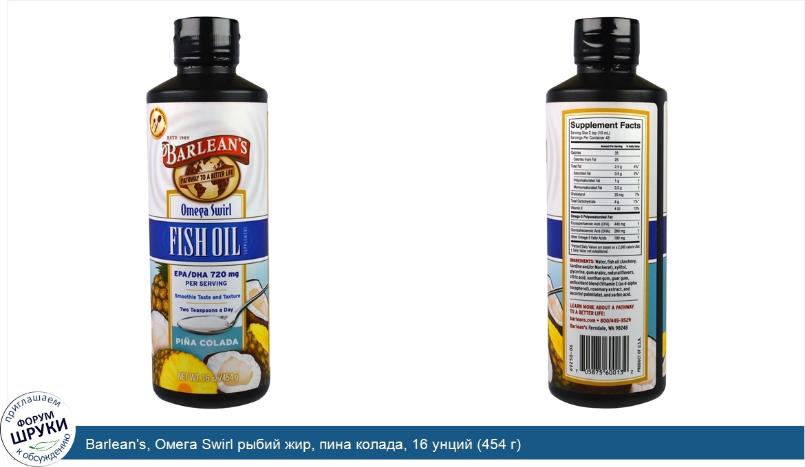 Друзья, если у вас есть отзыв/дополнение/комментарий/вопрос относительно Barlean's, Омега Swirl рыбий жир, пина колада, 16 унций (454 г) - напишите его ответом в эту тему (это будет полезно всему сообществу в целом и вам в отдельности).
