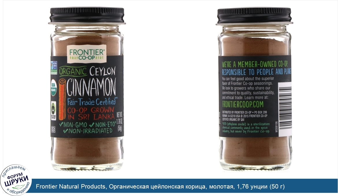 Frontier Natural Products, Органическая цейлонская корица, молотая, 1,76 унции (50 г)