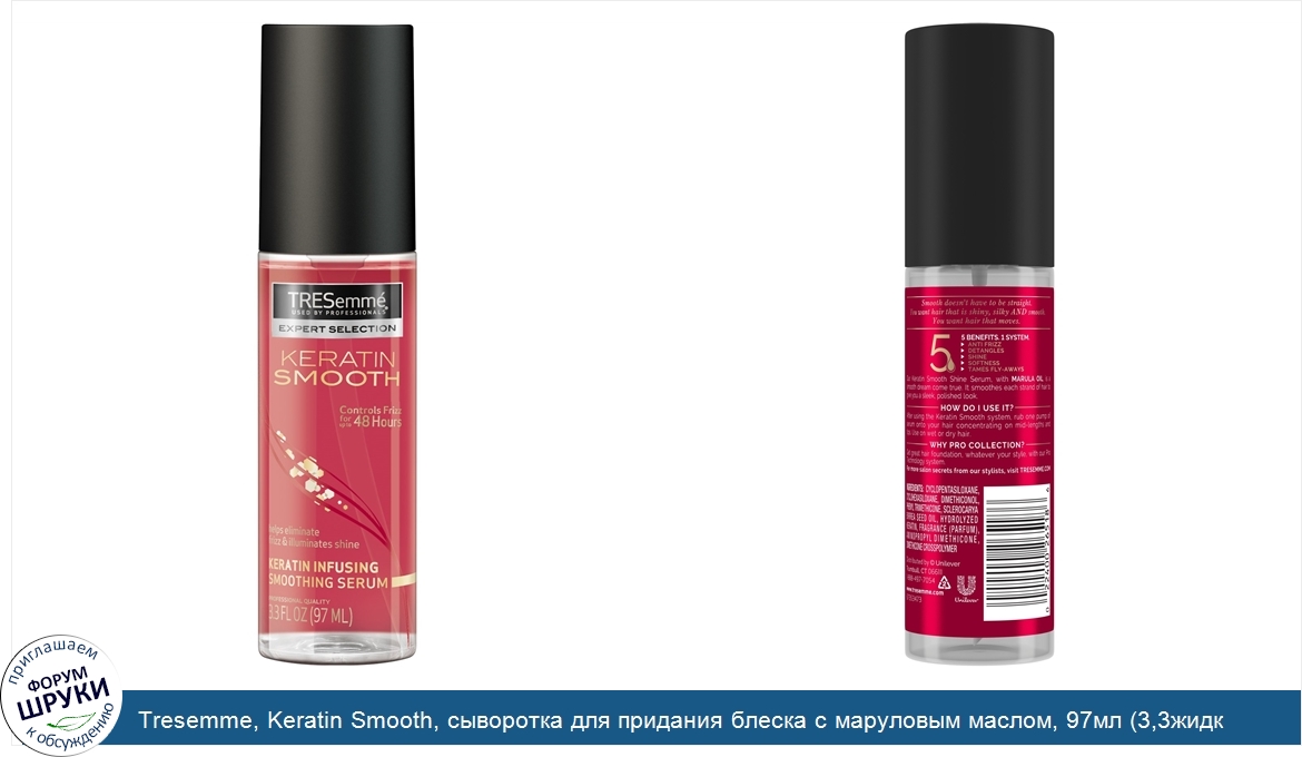 Друзья, если у вас есть отзыв/дополнение/комментарий/вопрос относительно Tresemme, Keratin Smooth, сыворотка для придания блеска с маруловым маслом, 97мл (3,3жидк.унции) - напишите его ответом в эту тему (это будет полезно всему сообществу в целом и вам в отдельности).