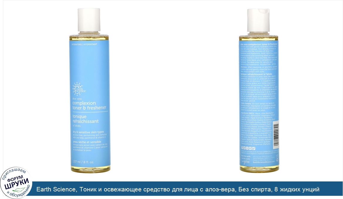 Друзья, если у вас есть отзыв/дополнение/комментарий/вопрос относительно Earth Science, Тоник и освежающее средство для лица с алоэ-вера, Без спирта, 8 жидких унций (237 мл) - напишите его ответом в эту тему (это будет полезно всему сообществу в целом и вам в отдельности).