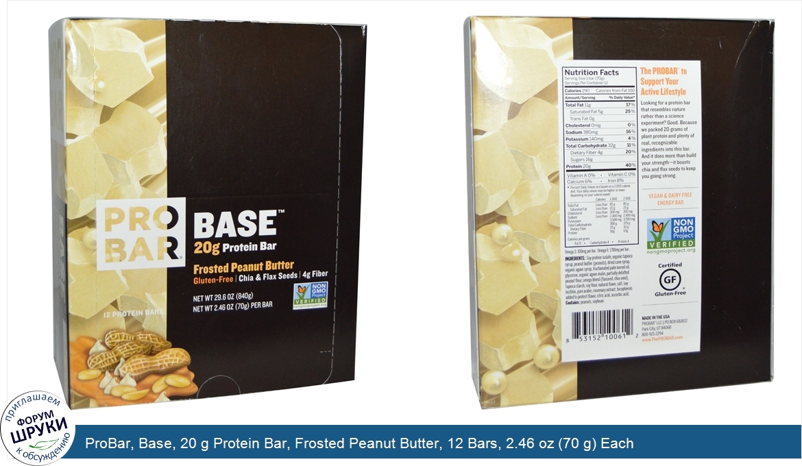 Друзья, если у вас есть отзыв/дополнение/комментарий/вопрос относительно ProBar, Base, 20 g Protein Bar, Frosted Peanut Butter, 12 Bars, 2.46 oz (70 g) Each - напишите его ответом в эту тему (это будет полезно всему сообществу в целом и вам в отдельности).