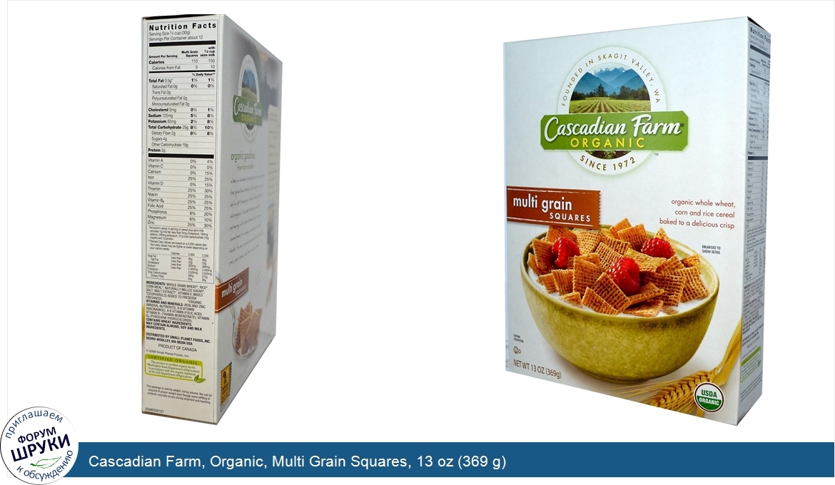 ru Cascadian Farm, Organic, Multi Grain Squares, 13 oz (369 g)