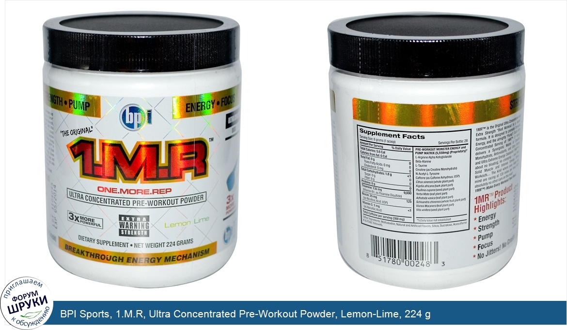 Друзья, если у вас есть отзыв/дополнение/комментарий/вопрос относительно BPI Sports, 1.M.R, Ultra Concentrated Pre-Workout Powder, Lemon-Lime, 224 g - напишите его ответом в эту тему (это будет полезно всему сообществу в целом и вам в отдельности).