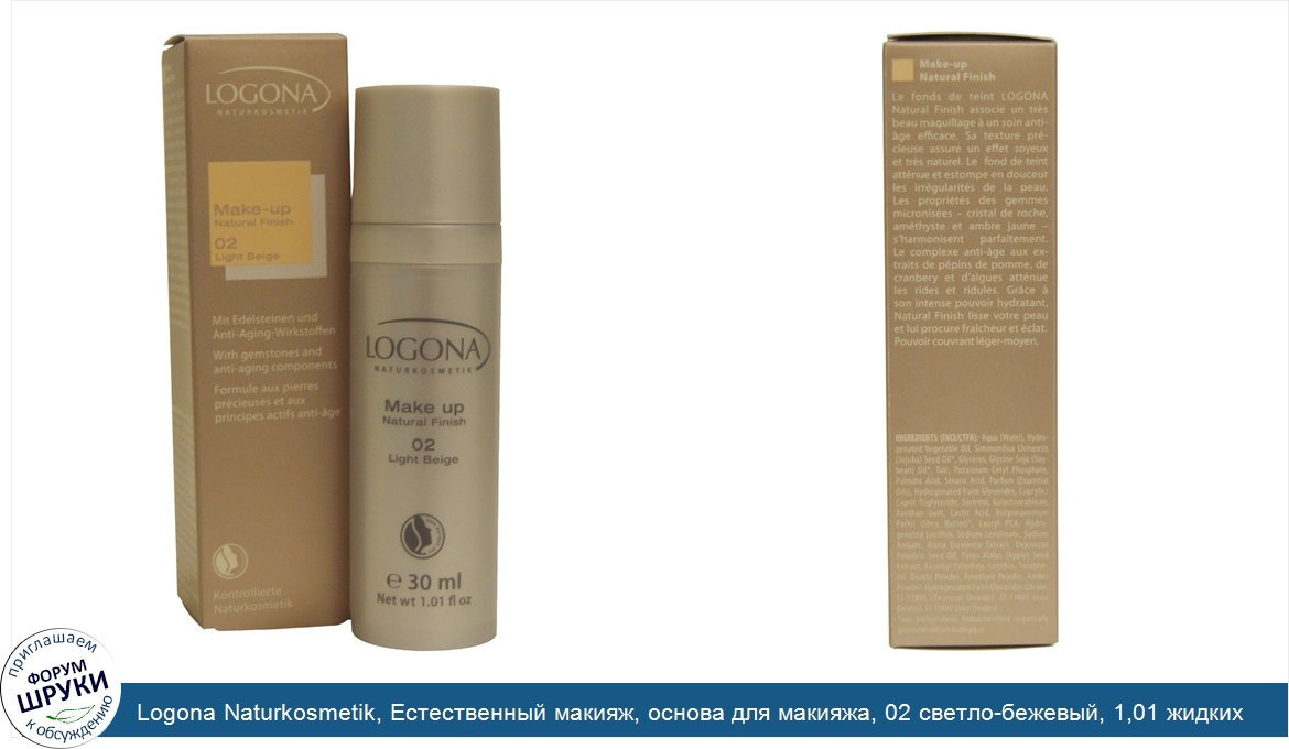 Друзья, если у вас есть отзыв/дополнение/комментарий/вопрос относительно Logona Naturkosmetik, Естественный макияж, основа для макияжа, 02 светло-бежевый, 1,01 жидких унций (30 мл) - напишите его ответом в эту тему (это будет полезно всему сообществу в целом и вам в отдельности).