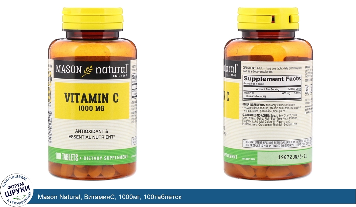 Друзья, если у вас есть отзыв/дополнение/комментарий/вопрос относительно Mason Natural, ВитаминС, 1000мг, 100таблеток - напишите его ответом в эту тему (это будет полезно всему сообществу в целом и вам в отдельности).