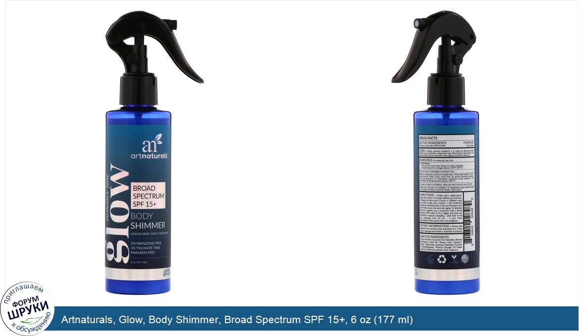 Artnaturals, Glow, Body Shimmer, Broad Spectrum SPF 15+, 6 oz (177 ml)