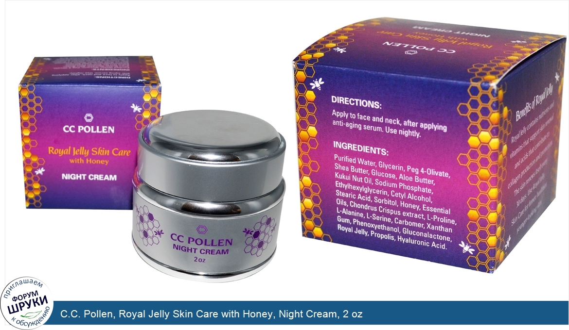 C.C. Pollen, Royal Jelly Skin Care with Honey, Night Cream, 2 oz