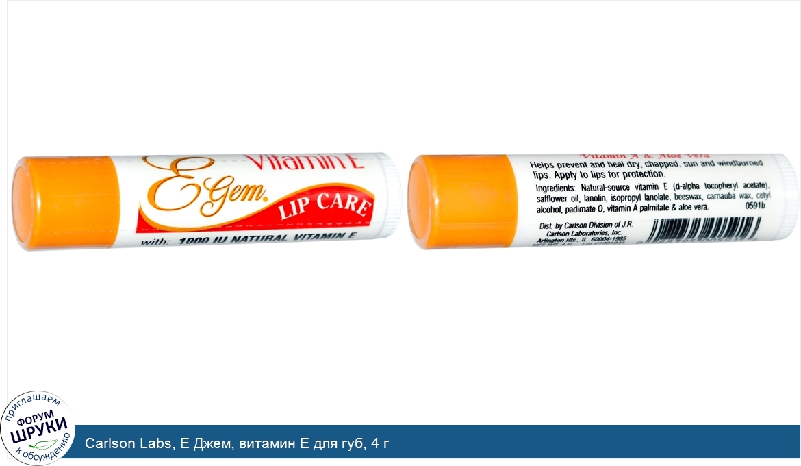 Друзья, если у вас есть отзыв/дополнение/комментарий/вопрос относительно Carlson Labs, E Джем, витамин Е для губ, 4 г - напишите его ответом в эту тему (это будет полезно всему сообществу в целом и вам в отдельности).