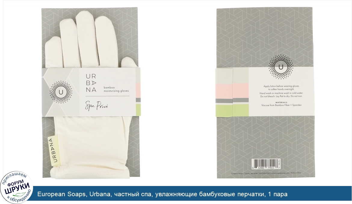 European Soaps, Urbana, частный спа, увлажняющие бамбуковые перчатки, 1 пара
