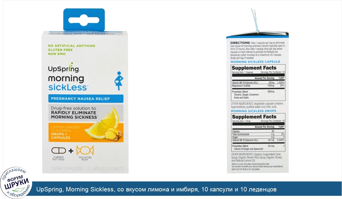 Друзья, если у вас есть отзыв/дополнение/комментарий/вопрос относительно UpSpring, Morning Sickless, со вкусом лимона и имбиря, 10 капсули и 10 леденцов - напишите его ответом в эту тему (это будет полезно всему сообществу в целом и вам в отдельности).