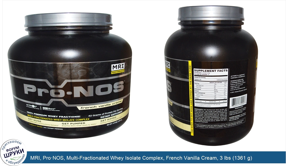 MRI, Pro·NOS, Multi-Fractionated Whey Isolate Complex, French Vanilla Cream, 3 lbs (1361 g)