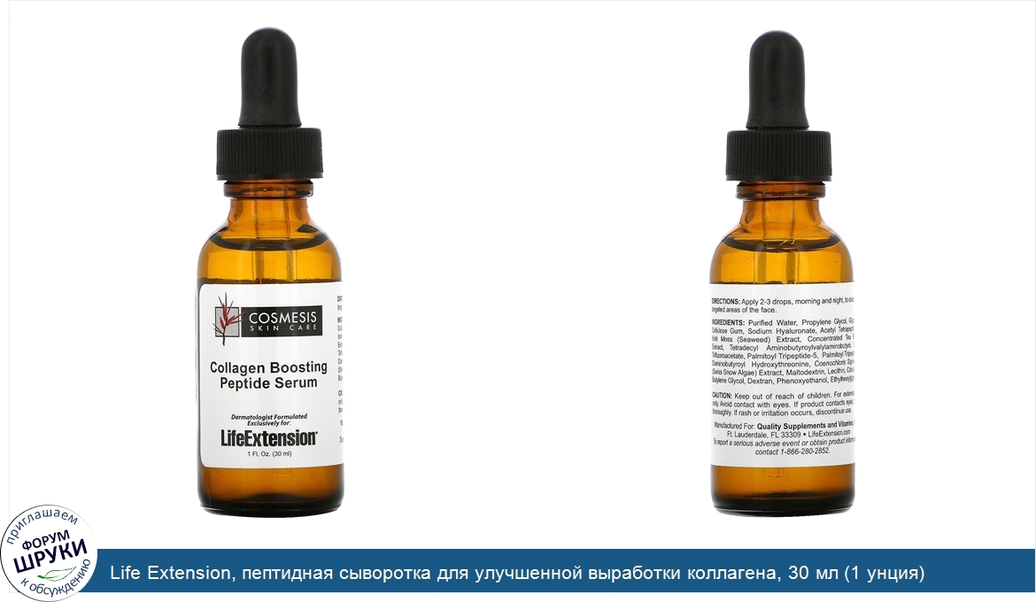 Life Extension, пептидная сыворотка для улучшенной выработки коллагена, 30 мл (1 унция)