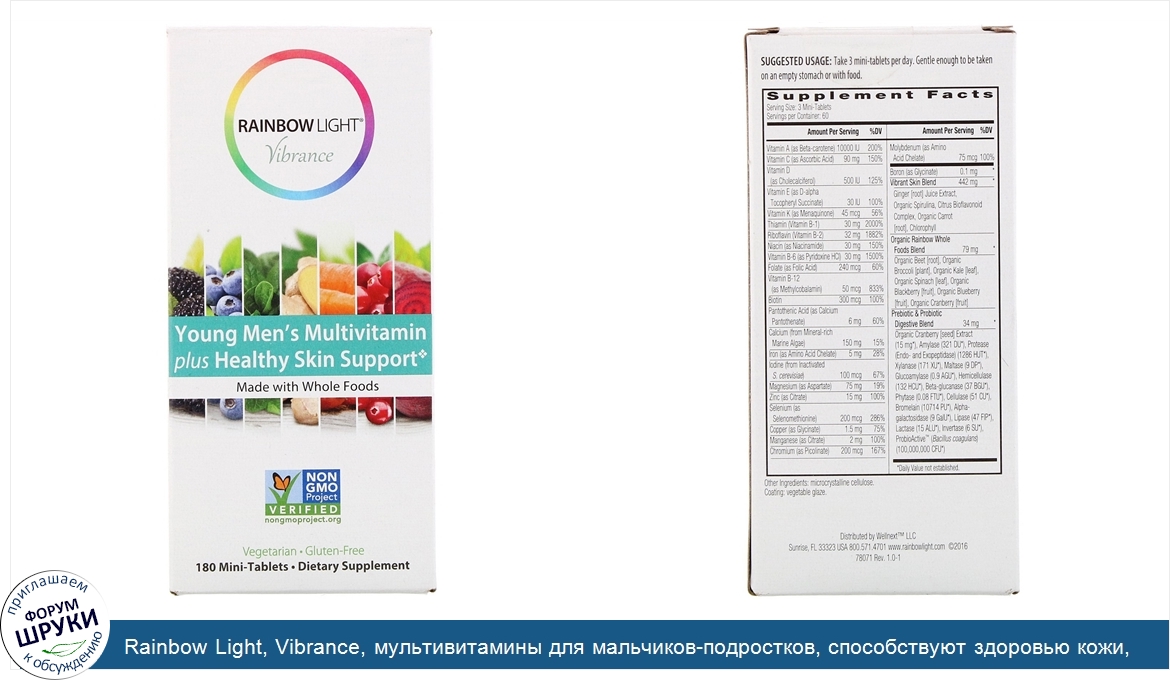 Друзья, если у вас есть отзыв/дополнение/комментарий/вопрос относительно Rainbow Light, Vibrance, мультивитамины для мальчиков-подростков, способствуют здоровью кожи, 180мини-таблеток - напишите его ответом в эту тему (это будет полезно всему сообществу в целом и вам в отдельности).