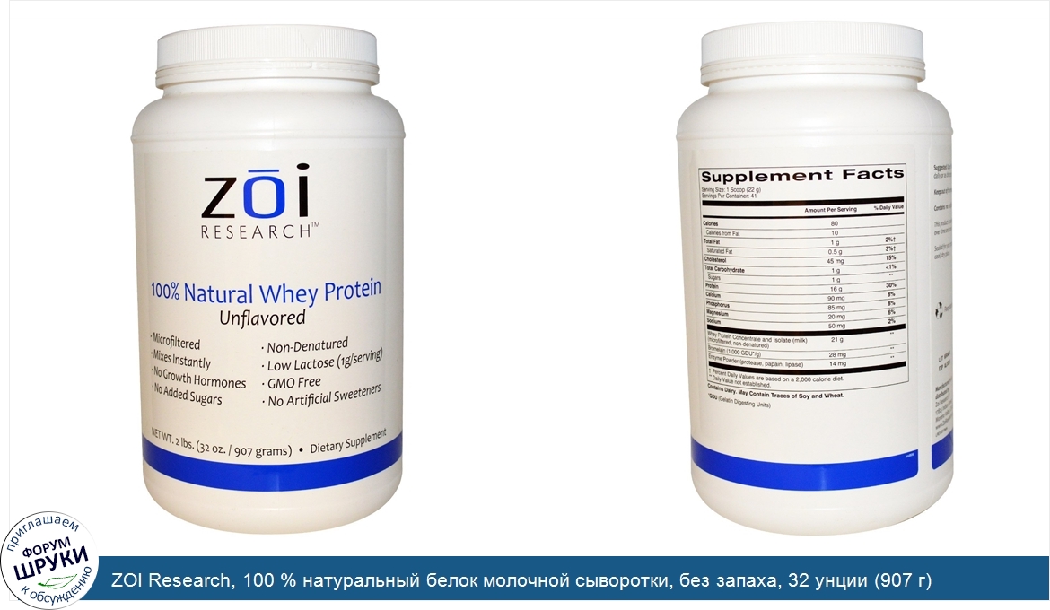 ru ZOI Research, 100 % натуральный белок молочной сыворотки, без запаха, 32 унции (907 г)
