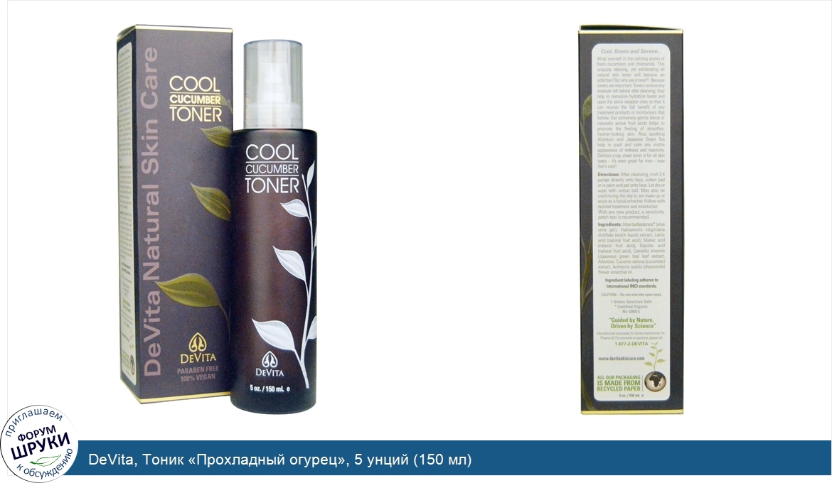 Друзья, если у вас есть отзыв/дополнение/комментарий/вопрос относительно DeVita, Тоник «Прохладный огурец», 5 унций (150 мл) - напишите его ответом в эту тему (это будет полезно всему сообществу в целом и вам в отдельности).
