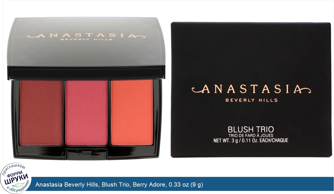 Друзья, если у вас есть отзыв/дополнение/комментарий/вопрос относительно Anastasia Beverly Hills, Blush Trio, Berry Adore, 0.33 oz (9 g) - напишите его ответом в эту тему (это будет полезно всему сообществу в целом и вам в отдельности).