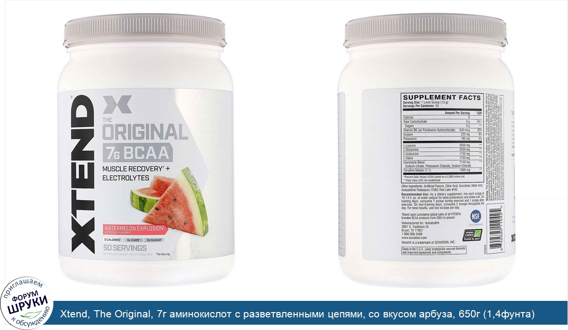 Xtend, The Original, 7г аминокислот с разветвленными цепями, со вкусом арбуза, 650г (1,4фунта)