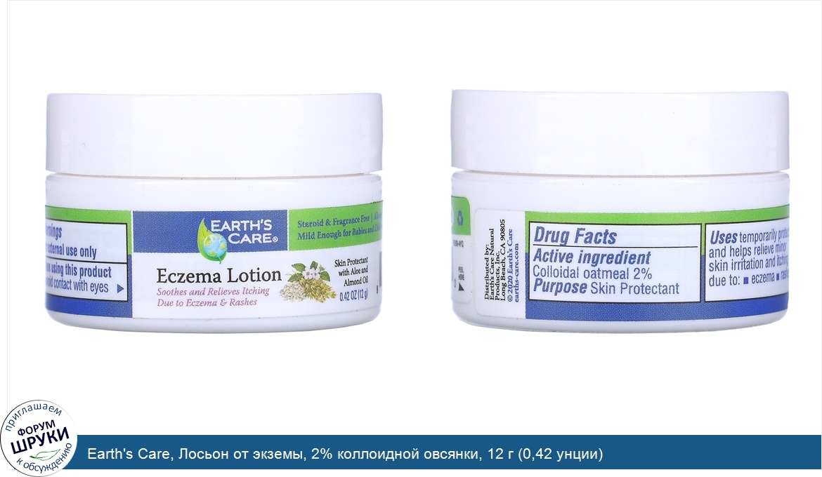Друзья, если у вас есть отзыв/дополнение/комментарий/вопрос относительно Earth's Care, Лосьон от экземы, 2% коллоидной овсянки, 12 г (0,42 унции) - напишите его ответом в эту тему (это будет полезно всему сообществу в целом и вам в отдельности).