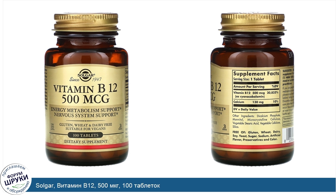 Друзья, если у вас есть отзыв/дополнение/комментарий/вопрос относительно Solgar, Витамин В12, 500 мкг, 100 таблеток - напишите его ответом в эту тему (это будет полезно всему сообществу в целом и вам в отдельности).
