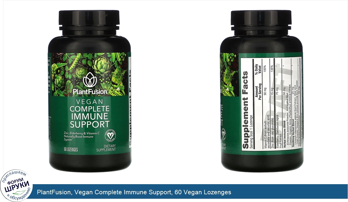PlantFusion, Vegan Complete Immune Support, 60 Vegan Lozenges