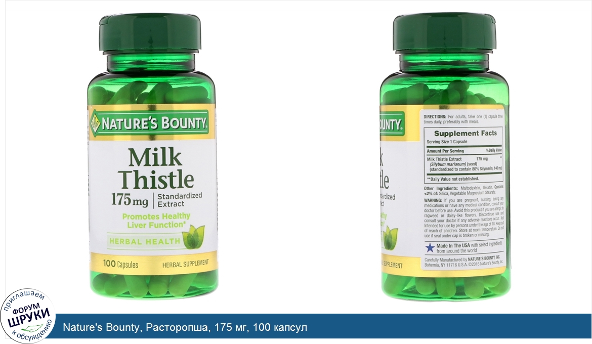 Nature's Bounty, Расторопша, 175 мг, 100 капсул