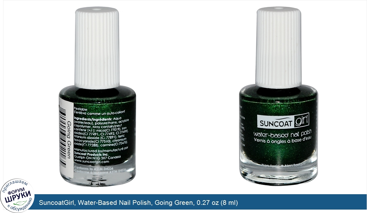Друзья, если у вас есть отзыв/дополнение/комментарий/вопрос относительно SuncoatGirl, Water-Based Nail Polish, Going Green, 0.27 oz (8 ml) - напишите его ответом в эту тему (это будет полезно всему сообществу в целом и вам в отдельности).