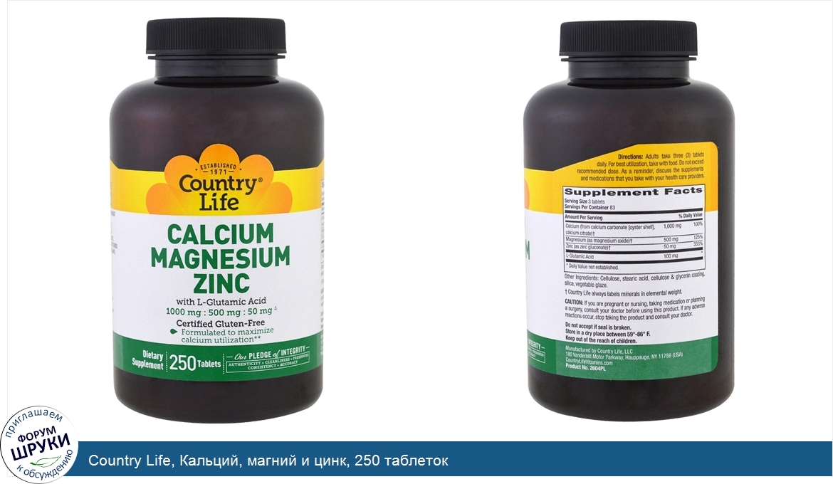 Друзья, если у вас есть отзыв/дополнение/комментарий/вопрос относительно Country Life, Кальций, магний и цинк, 250 таблеток - напишите его ответом в эту тему (это будет полезно всему сообществу в целом и вам в отдельности).