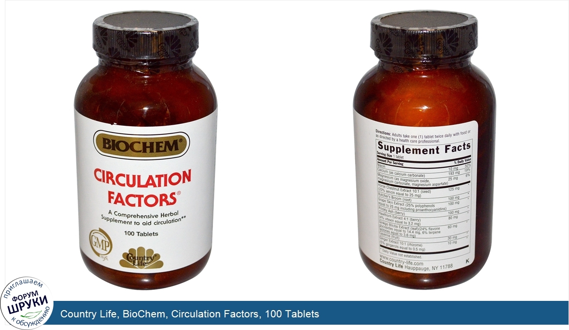 Country Life, BioChem, Circulation Factors, 100 Tablets