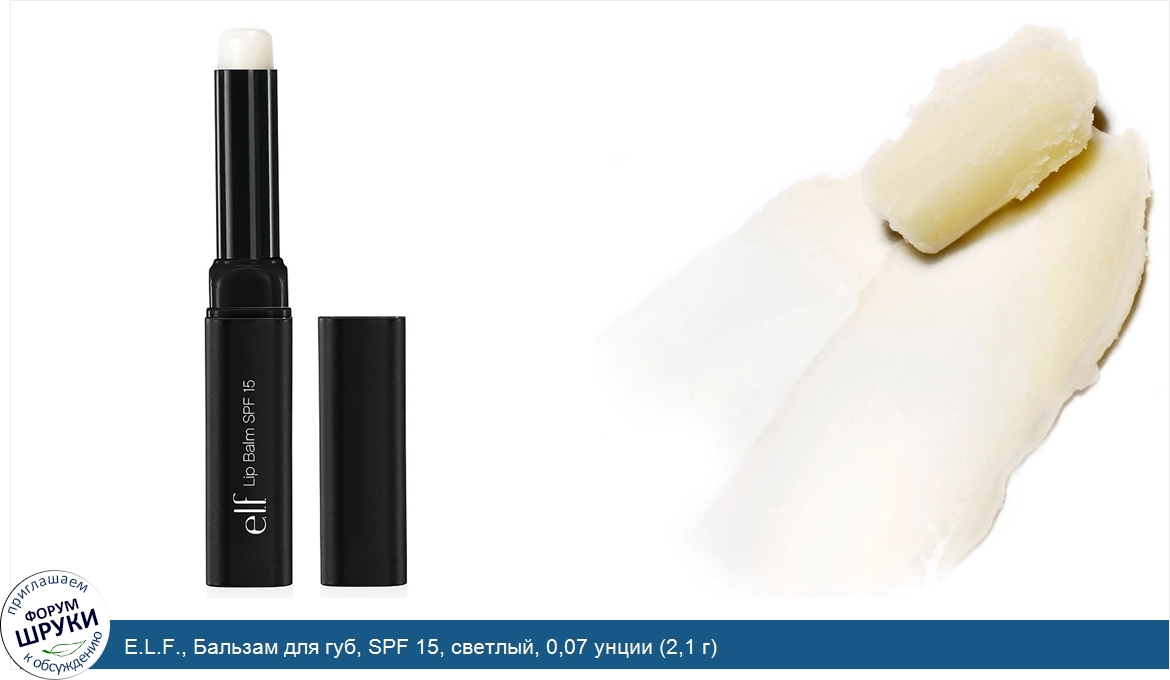 E.L.F., Бальзам для губ, SPF 15, светлый, 0,07 унции (2,1 г)