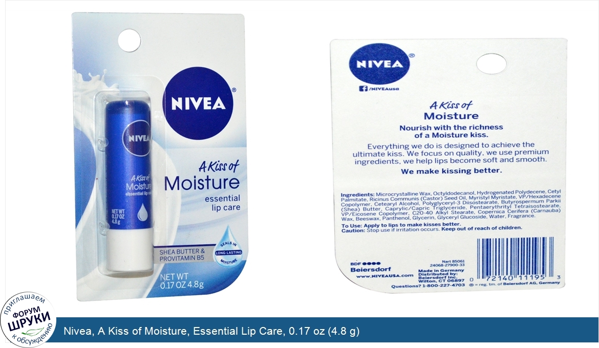 Друзья, если у вас есть отзыв/дополнение/комментарий/вопрос относительно Nivea, A Kiss of Moisture, Essential Lip Care, 0.17 oz (4.8 g) - напишите его ответом в эту тему (это будет полезно всему сообществу в целом и вам в отдельности).