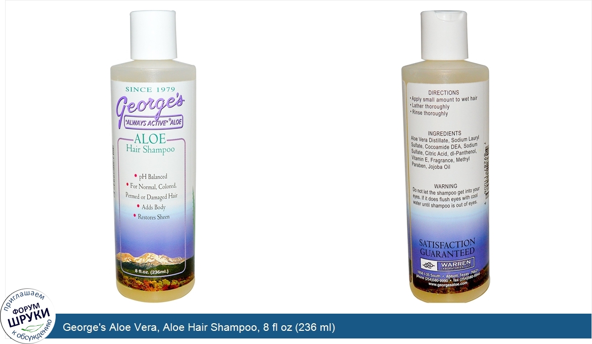 Друзья, если у вас есть отзыв/дополнение/комментарий/вопрос относительно George's Aloe Vera, Aloe Hair Shampoo, 8 fl oz (236 ml) - напишите его ответом в эту тему (это будет полезно всему сообществу в целом и вам в отдельности).