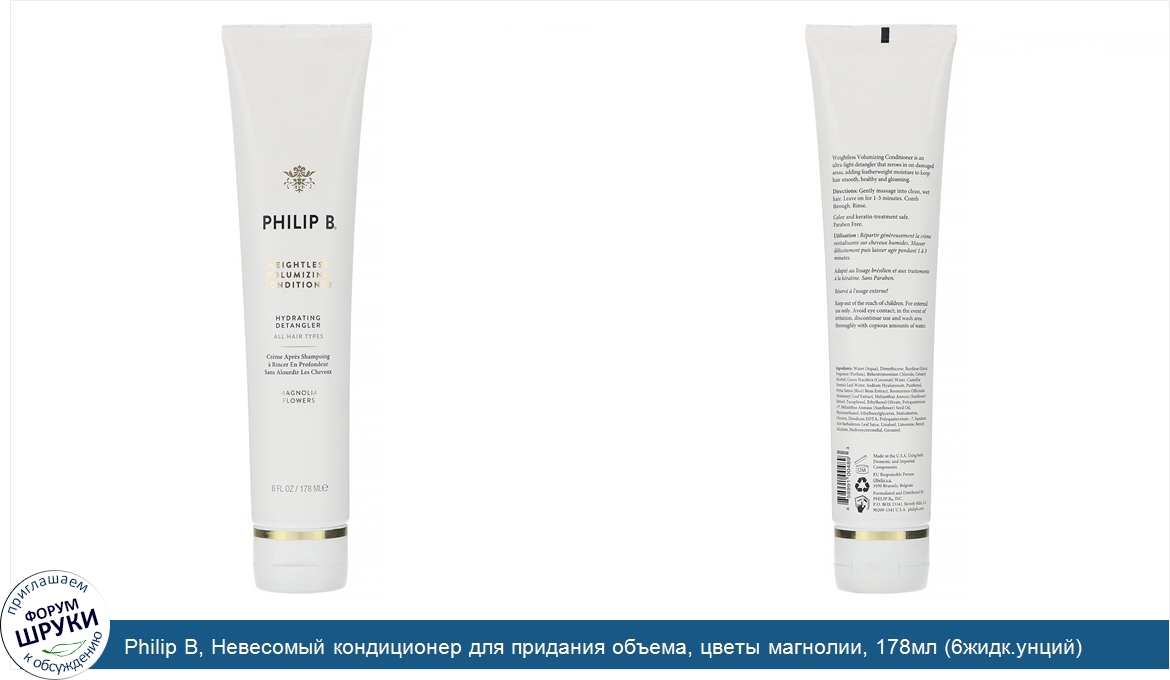 Друзья, если у вас есть отзыв/дополнение/комментарий/вопрос относительно Philip B, Невесомый кондиционер для придания объема, цветы магнолии, 178мл (6жидк.унций) - напишите его ответом в эту тему (это будет полезно всему сообществу в целом и вам в отдельности).