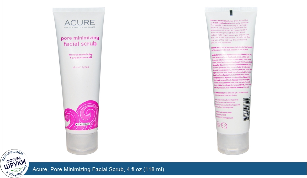 Друзья, если у вас есть отзыв/дополнение/комментарий/вопрос относительно Acure, Pore Minimizing Facial Scrub, 4 fl oz (118 ml) - напишите его ответом в эту тему (это будет полезно всему сообществу в целом и вам в отдельности).