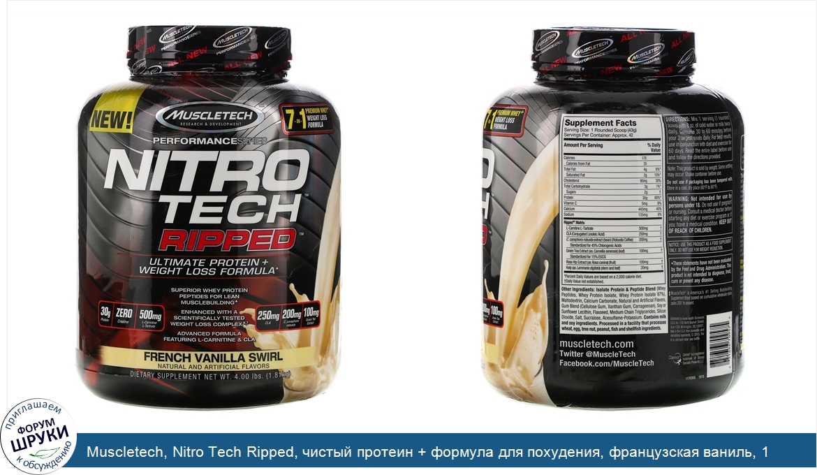 Друзья, если у вас есть отзыв/дополнение/комментарий/вопрос относительно Muscletech, Nitro Tech Ripped, чистый протеин + формула для похудения, французская ваниль, 1,81кг (4фунта) - напишите его ответом в эту тему (это будет полезно всему сообществу в целом и вам в отдельности).