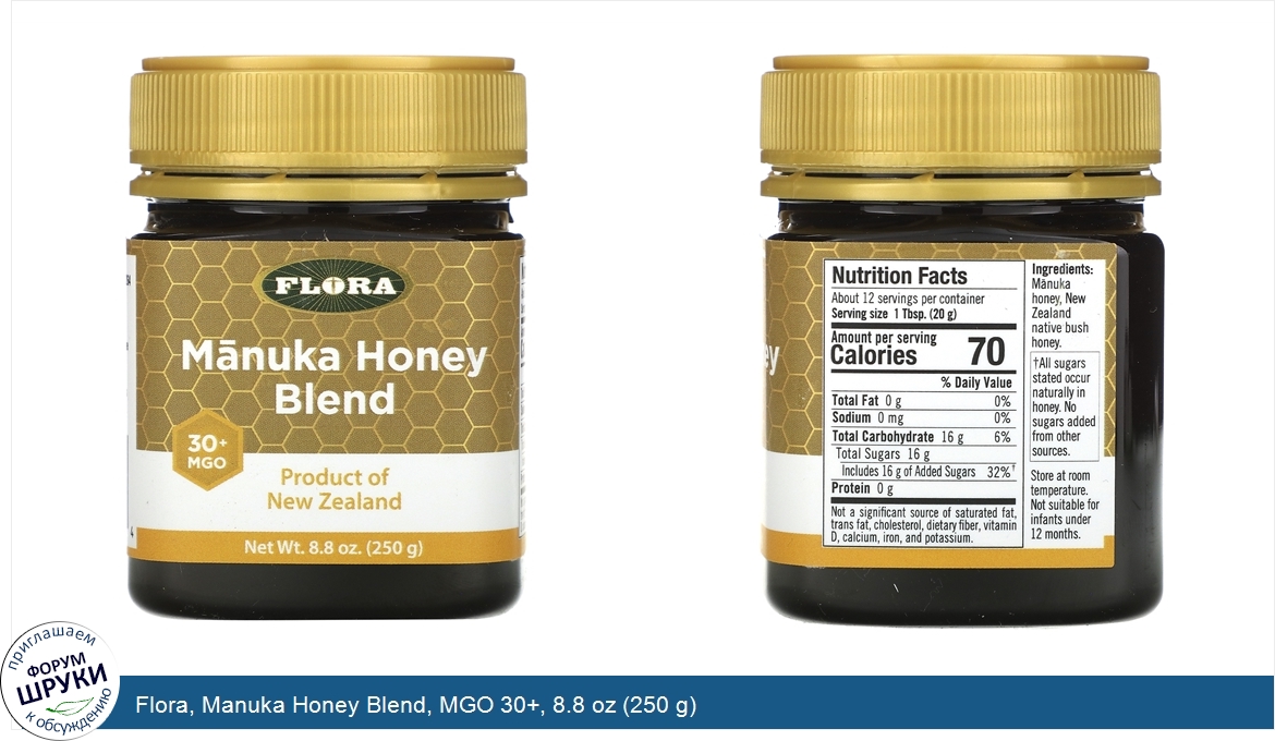 Друзья, если у вас есть отзыв/дополнение/комментарий/вопрос относительно Flora, Manuka Honey Blend, MGO 30+, 8.8 oz (250 g) - напишите его ответом в эту тему (это будет полезно всему сообществу в целом и вам в отдельности).