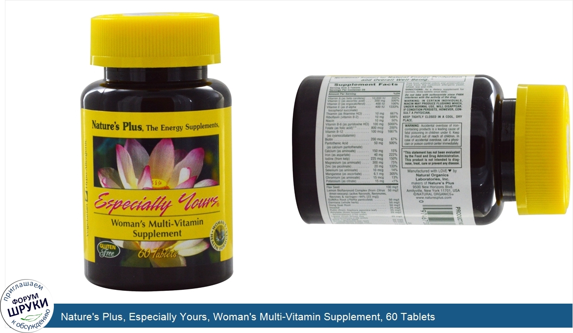 Друзья, если у вас есть отзыв/дополнение/комментарий/вопрос относительно Nature's Plus, Especially Yours, Woman's Multi-Vitamin Supplement, 60 Tablets - напишите его ответом в эту тему (это будет полезно всему сообществу в целом и вам в отдельности).