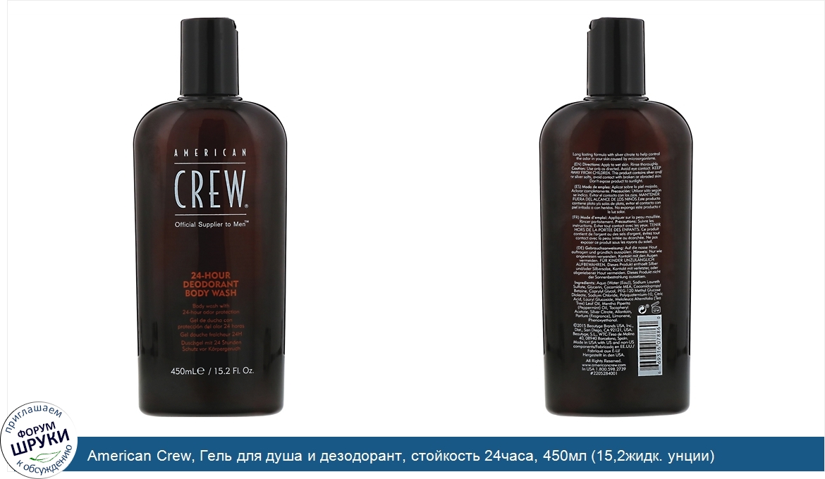 American Crew, Гель для душа и дезодорант, стойкость 24часа, 450мл (15,2жидк. унции)